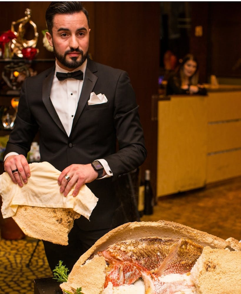 Whole Snapper Baked in A Salt Crust, Cracked Open and Served Tableside